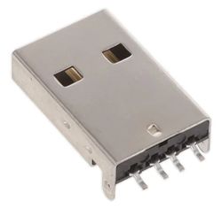 USB type A Male 4pin, SMT монтаж з кріпленням в отвори